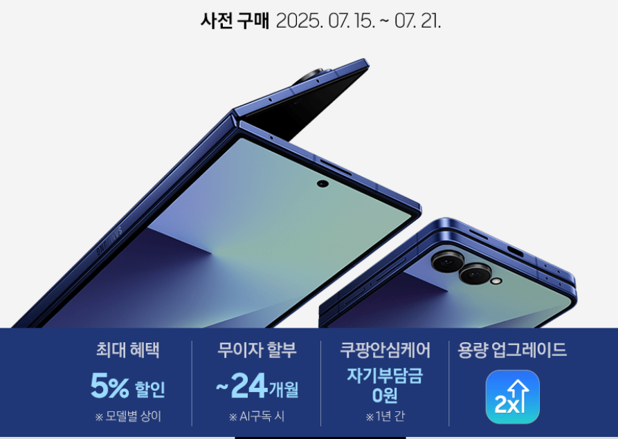 갤럭시 Z폴드7 사전예약 혜택을 잘 활용하시면 z폴드7 가격 부담을 크게 줄일 수 있고, 더블 스토리지, 공식 사은품, 쿠팡 즉시할인, 카드 무이자 등 다양한 혜택까지 모두 누리실 수 있습니다.