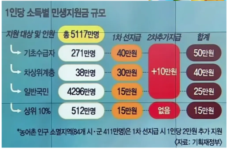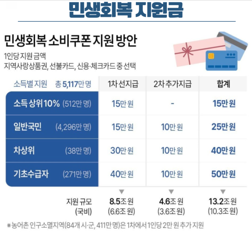 • 민생회복지원금 2단계 지급 시스템과 차등 지원 구조